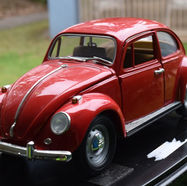 We have a lovely red 1:18 scale die-cast metal with plastic parts of one of the largest selling and produced vehicles on the planet. I would say without a doubt, one of the most recognized vehicles ever produced. This is a very well designed and made model of this vehicle. The body is absolutely flawless with the paintwork with absolutely no craving and no bubbles that some models come out with. The colour, beautiful red that makes this model stand out Being a 2-door sedan, both the doors open well, however I would prefer that they could open more to give a better view of the interior. At the sametime, it includes a rather small boot area, but displays the spare tyre perfectly. The engine cover at the rear also opens well and gives one a perfect view of the engine. The fit is quite good with solid opening and closing of these parts. Both headlights and rear lights are positioned well and that includes the turn indicator. The chrome bumper bars are well made and are solid to the touch, as well as small parts like the engine cover opening button.
